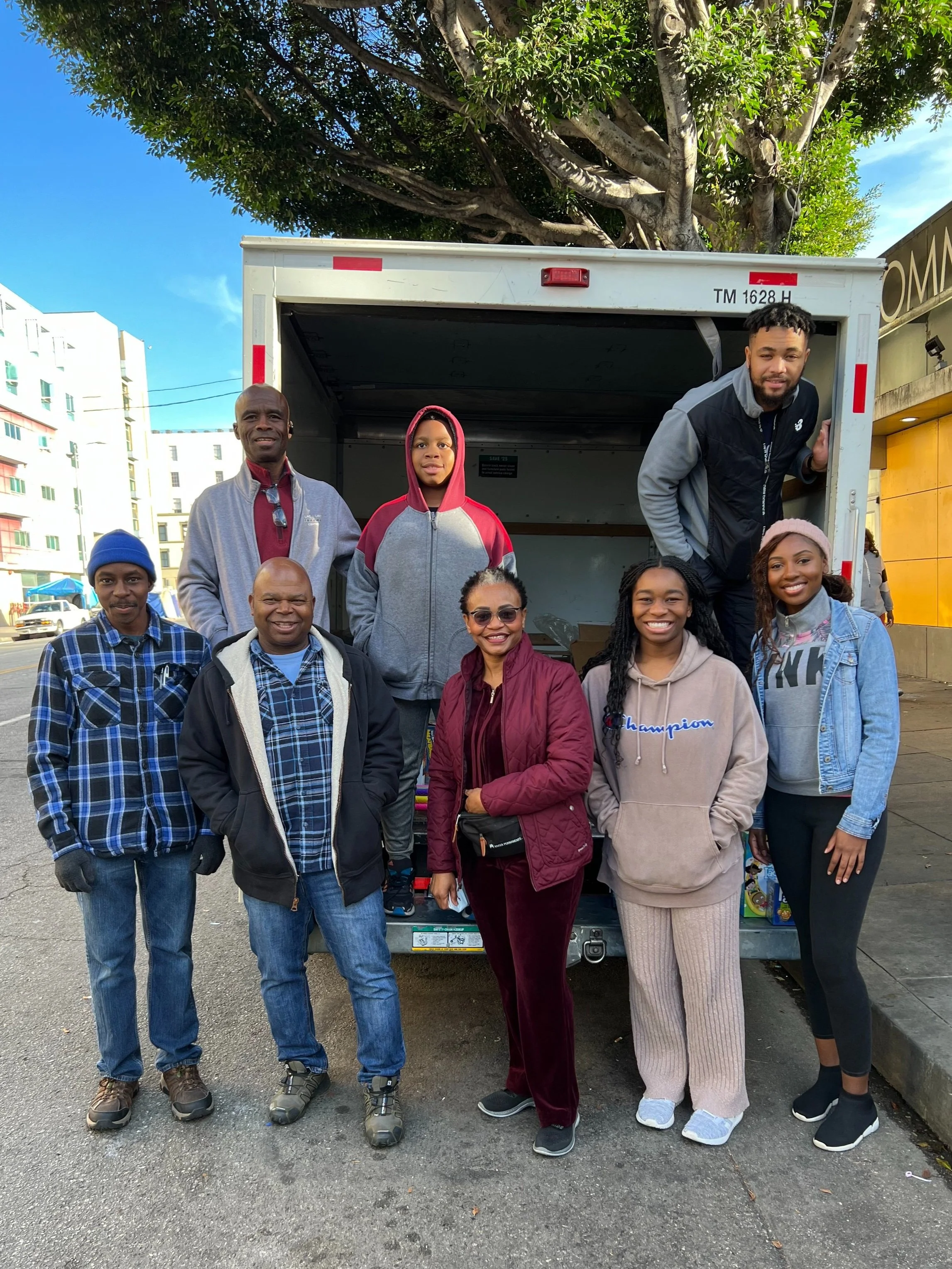 The day began with an air of excitement and anticipation as our volunteers gathered at Skid Row, a symbolic meeting point that highlighted our commitment to reaching those who needed it most. Our team transformed the back of a U-Haul into a mobile hub of generosity by creating a warm and inviting atmosphere that set the stage for a day of giving.